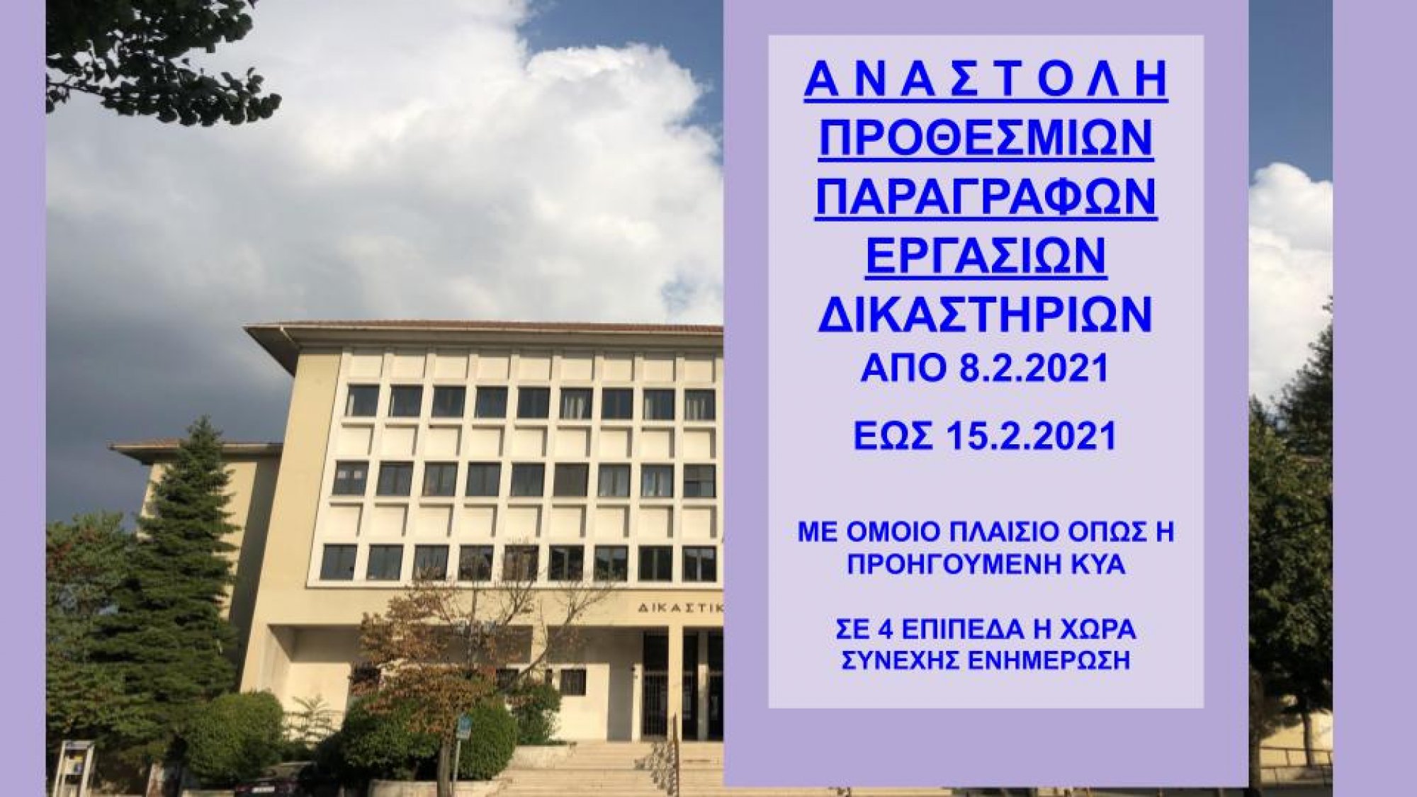Η υπ' αριθμ. 17/8.2.2021 πράξη της Προέδρου Εφετών για τη λειτουργία έως 15.2.2021